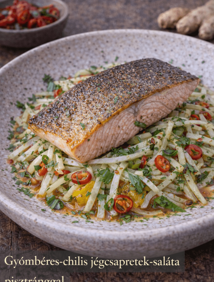 Gyömbéres-chilis jégcsapretek-saláta pisztránggal