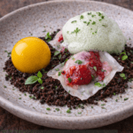 A főétel is sok kis komponensből állt, de addigra belejöttünk a tálalásba. A konyha csodálatos halat szerzett be, a lazacpisztráng sushi minőségű volt, az előkészített püré is szép selymesre és répaízűre sikerült. A répahab és a marinált répakockák is tökéletesre sikerültek. Rengeteg utánrendelést is kaptunk és ezt a kört sikerült megnyernünk. Ez volt az egyetlen étel az este folyamán, amit úgy sikerült kiadni, mint ahogy a pályázatom során elkészítettem és megterveztem. A versenyről egyébként a ZEIT facebook oldalára az összes étel közül ez az egyetlen ételkép került ki.