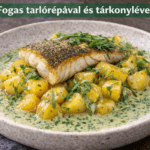 A derelyék alá hántolt édesköménygumóból és almából készítettem salátát, melyet kevés citromlével frissítettem fel. Végül zöld elemként frissen felaprított, majd olajban elkavart turbolyával locsoltam meg, valamint kerti zsázsával szórtam meg a tányért.