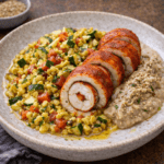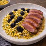 Sült paprikából készült coulis-ba, levesbe vagy viszonylag sok olajjal felengedett „paprikamajonézbe” előszeretettel pürésítek egy fél vagy egész szem szintén sütőben sült sárgabarackot. A barackot ehhez mindig a héjával együtt sütöm, mivel így a közvetlenül a héj alatt megbúvó savanykás ízek is belefolynak a gyümölcshúsba. Ilyen formájában a barack kellemesen kiemeli a paprika gyümölcsösségét valamint így elhagyható ill. mérsékelhető a krémhez szükséges ecet mennyisége. Mint ahogy a sárgabarack kiváló társa a kaliforniai paprikának, úgy alkot tökéletes párost a málna a paradicsommal is. Némi málna ugyanis rendkívül szépen kiemeli a paradicsom gyümölcsösségét. Az alábbi üdvözlőfalatnál is ezekből a párosításokból indultam ki.